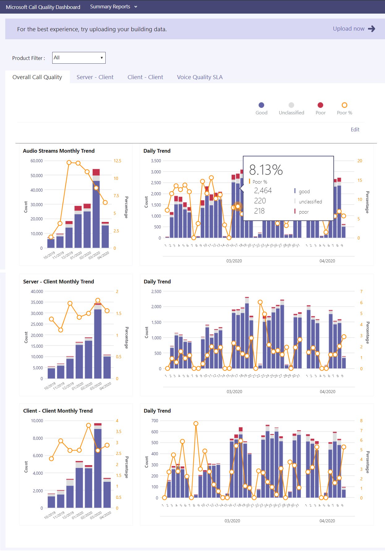 In January 2020, Microsoft introduced customizable Power BI templates you can use to analyze and report your Call Quality Dashboard data.
