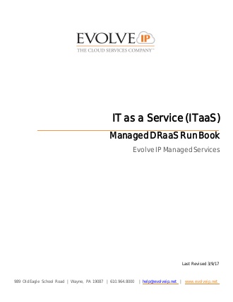 Evolve IP designed this template to help you capture and organize the critical information that will ensure that your organization’s IT operations are in a position to survive if a disaster transpires.