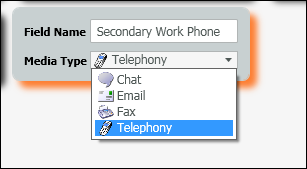 - The drop down contains all available contact fields that can be selected for the contact. These available contact fields come from the Address Book Metadata. The above image shows the five default entries mentioned in the overview. If a custom entry is added within the Address Book Metadata, it would also be available within this drop down.