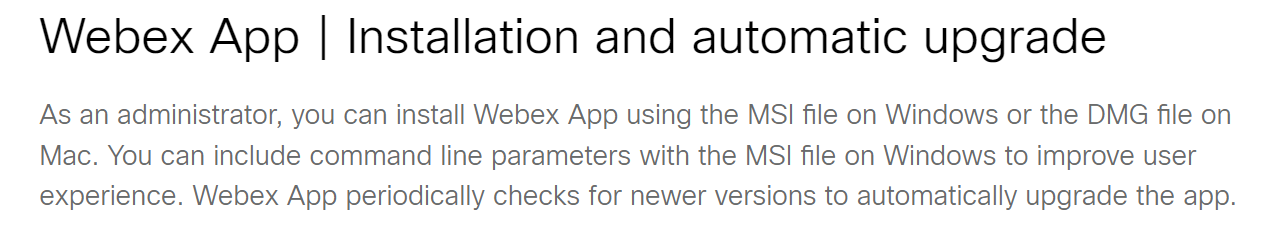 Webex App | Installation and automatic upgrade