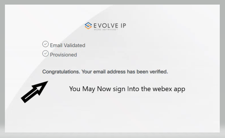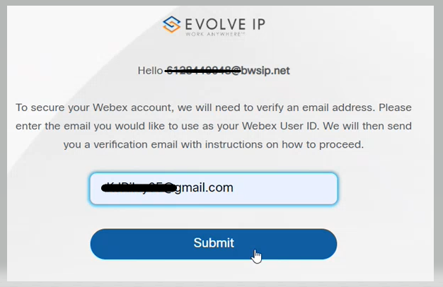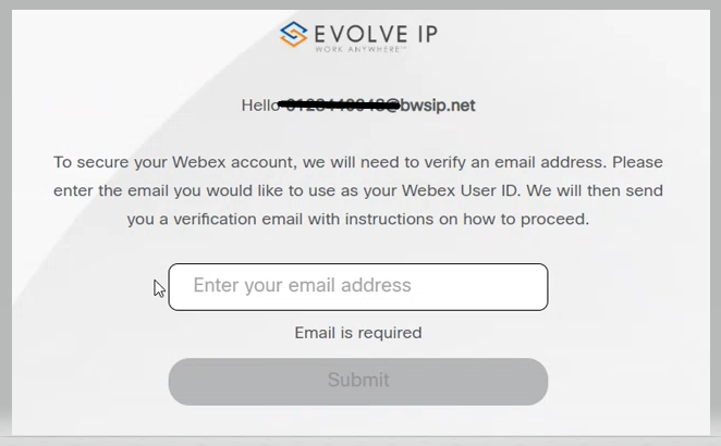 You will be required to add your company email address and verify it before using Evolve Anywhere with Webex. To set up your company email address click here! and follow the below steps. This link will direct you to the email verification page.