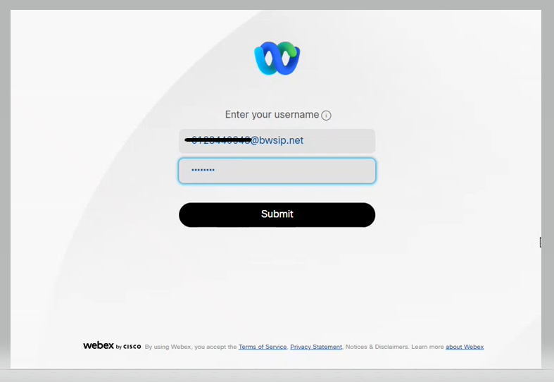 On this Page please enter your ODIN USER ID, This Must include "@bwsip.net"