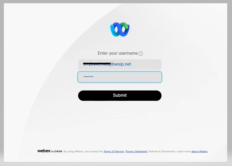 On this Page please enter your ODIN USER ID, This Must include "@bwsip.net"