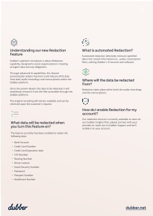 Dubber has introduced a new feature which will search for and redact information related to PCI data within a call recording and its related transcription. This feature is available to those users subscribing to Dubber at the Call Recording and AI - Unlimited level.