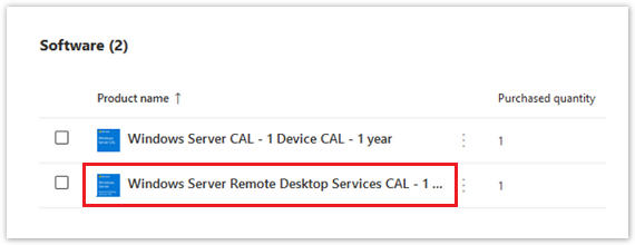 In the Software section, click on the Windows Server Remote Desktop Services product