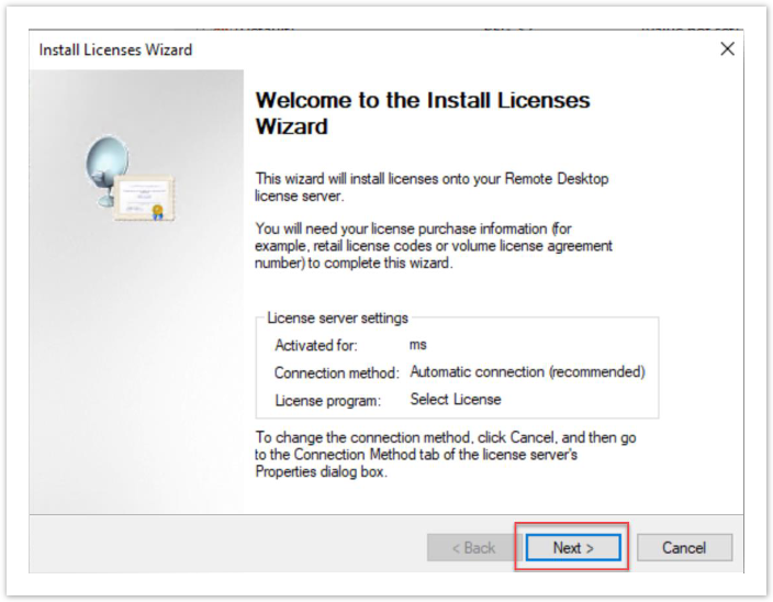 - The RDS License Server must be in Automatic Internet Connection mode, and have access to the Internet to activate the license key(s)