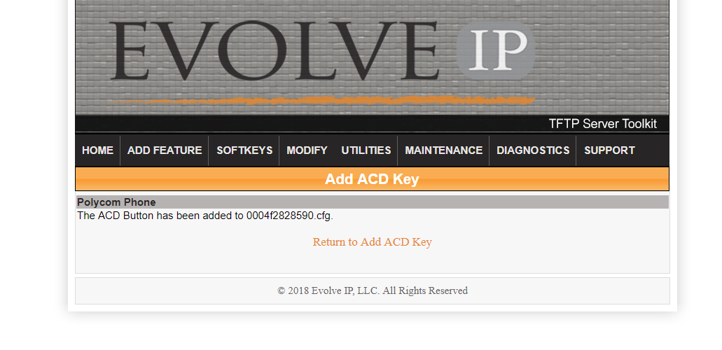 You should be prompted with a message saying "The ACD button has been added to (MAC Address).cfg" as seen on the left.