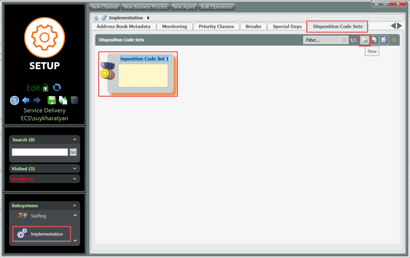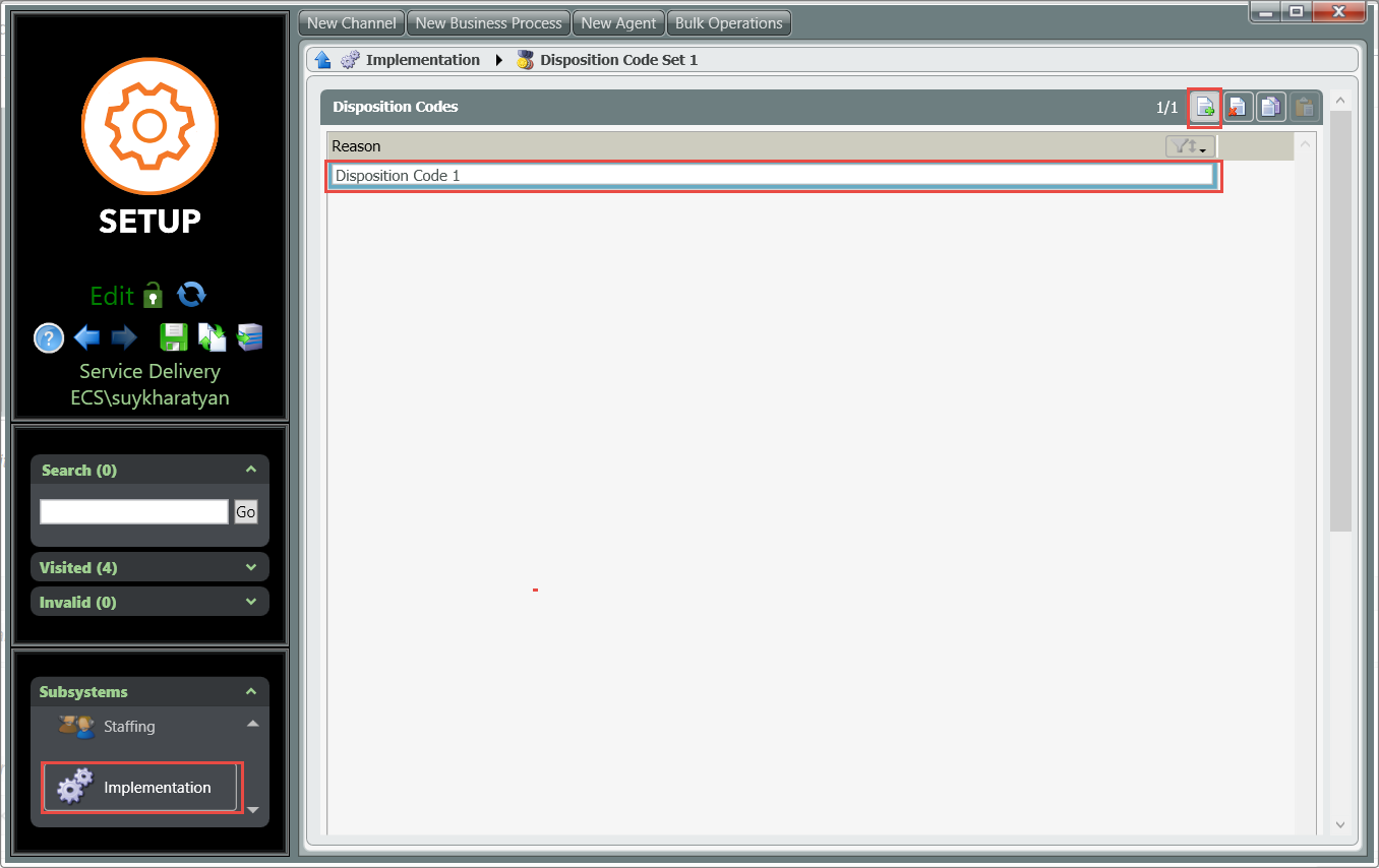 - Navigate to the Implementation subsystem and locate the Disposition Code Set