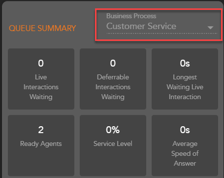 - Queue Summary- provides real time and summary stats on the selected Business Process including: