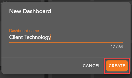 A New Dashboard window will open. Enter the name of the new Dashboard and select Create