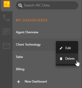A Dashboard can be deleted if there are more than one Dashboard views in the AIC Panel. To delete a Dashboard view, select menu options > Delete