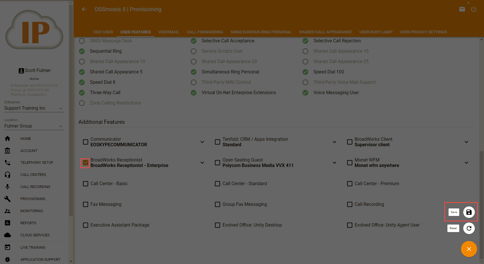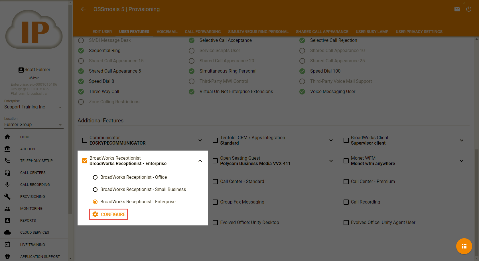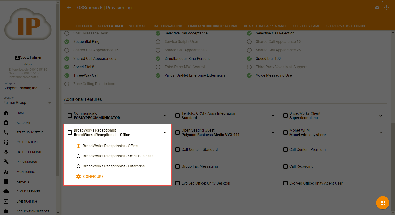 Click the arrow and choose the radio button next to the correct BroadWorks Receptionist license