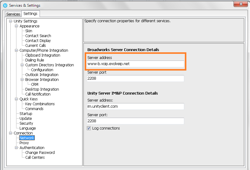 Unity Agent uses the users Broadsoft ID+@voip.evolveip.net or their domain for authentication.