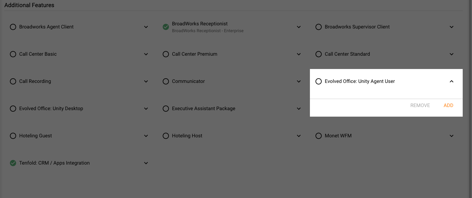 Unity Agent application requires a license to use, and the Broadworks Call Center Premium Agent license to be assigned to queue(s)