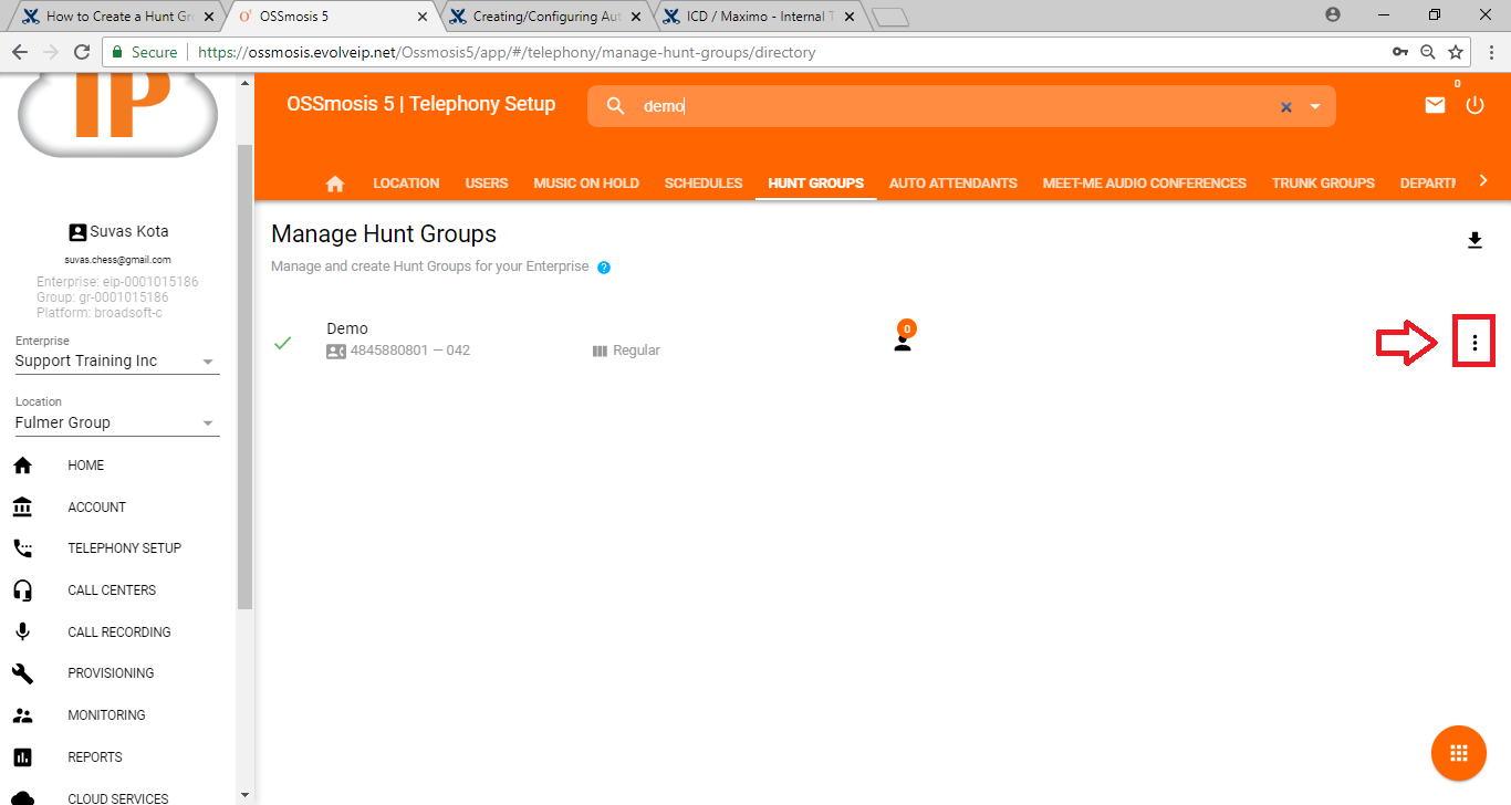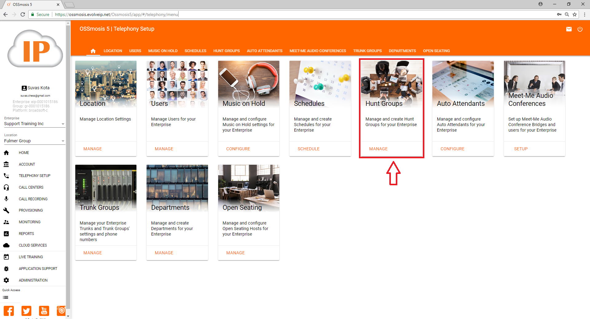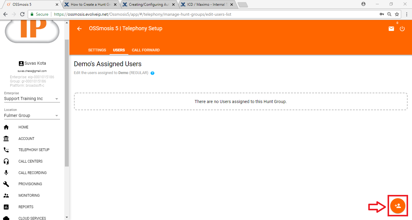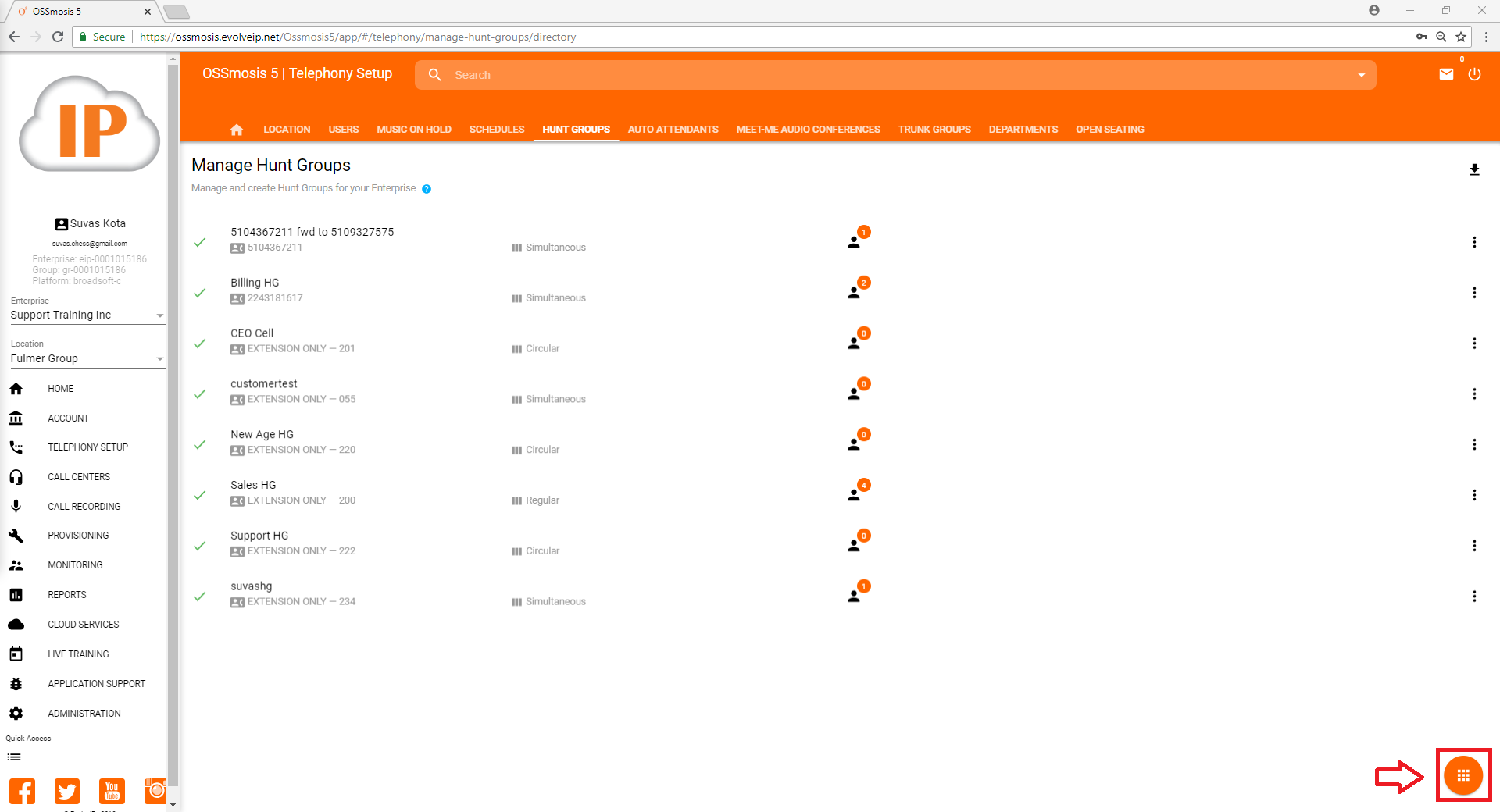 The Hunt Group has been created but users need to be added so in the seach bar, look the Hunt Group up