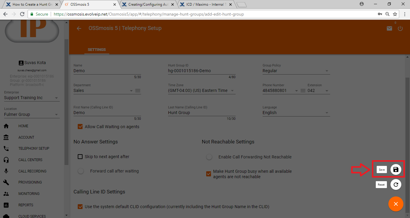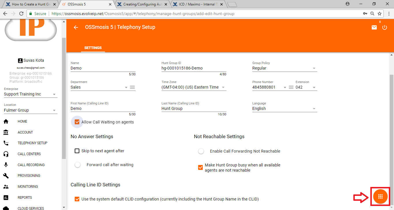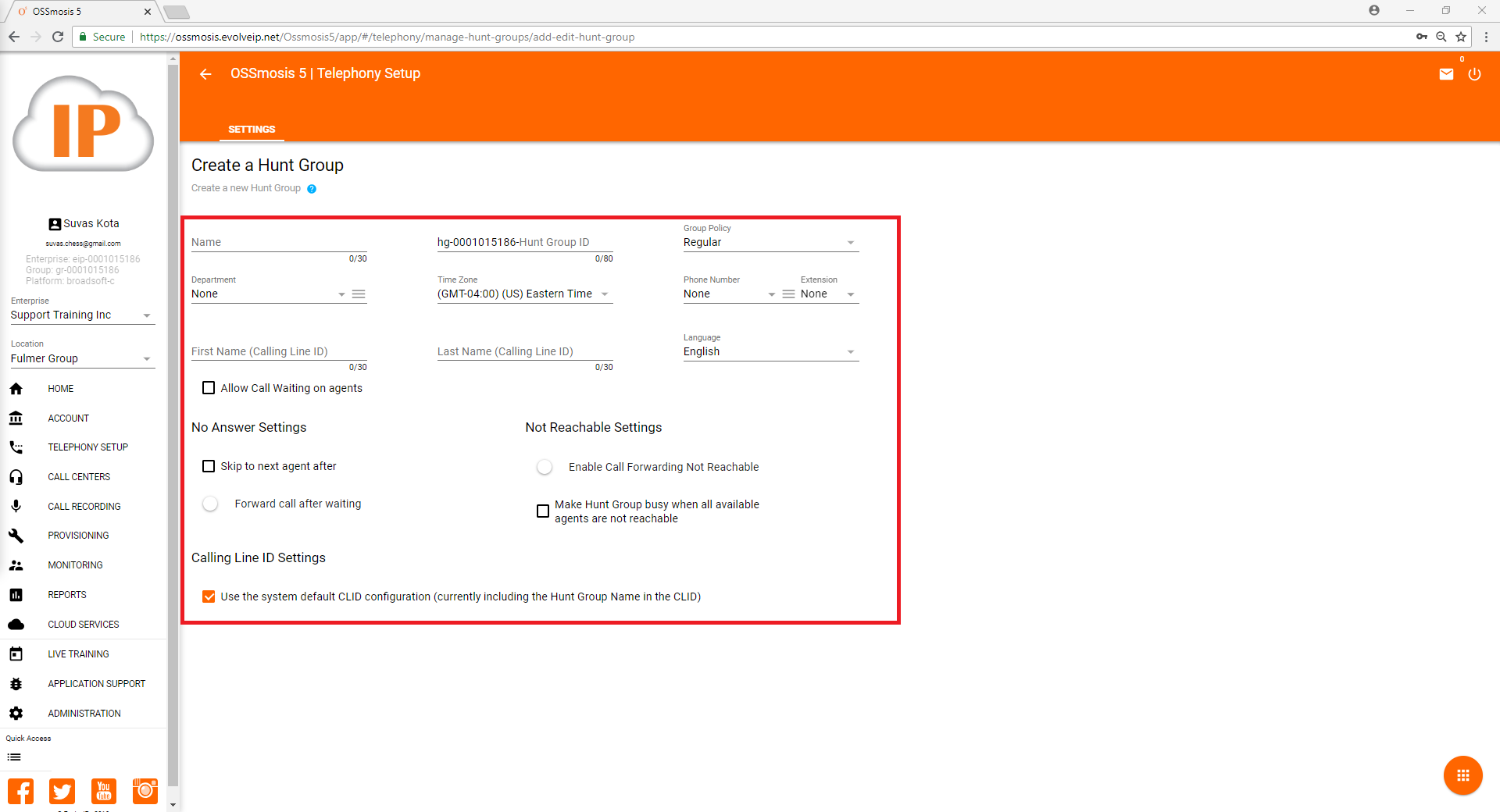 • Hunt Group ID = Make sure the Hunt Group ID is the same as the name