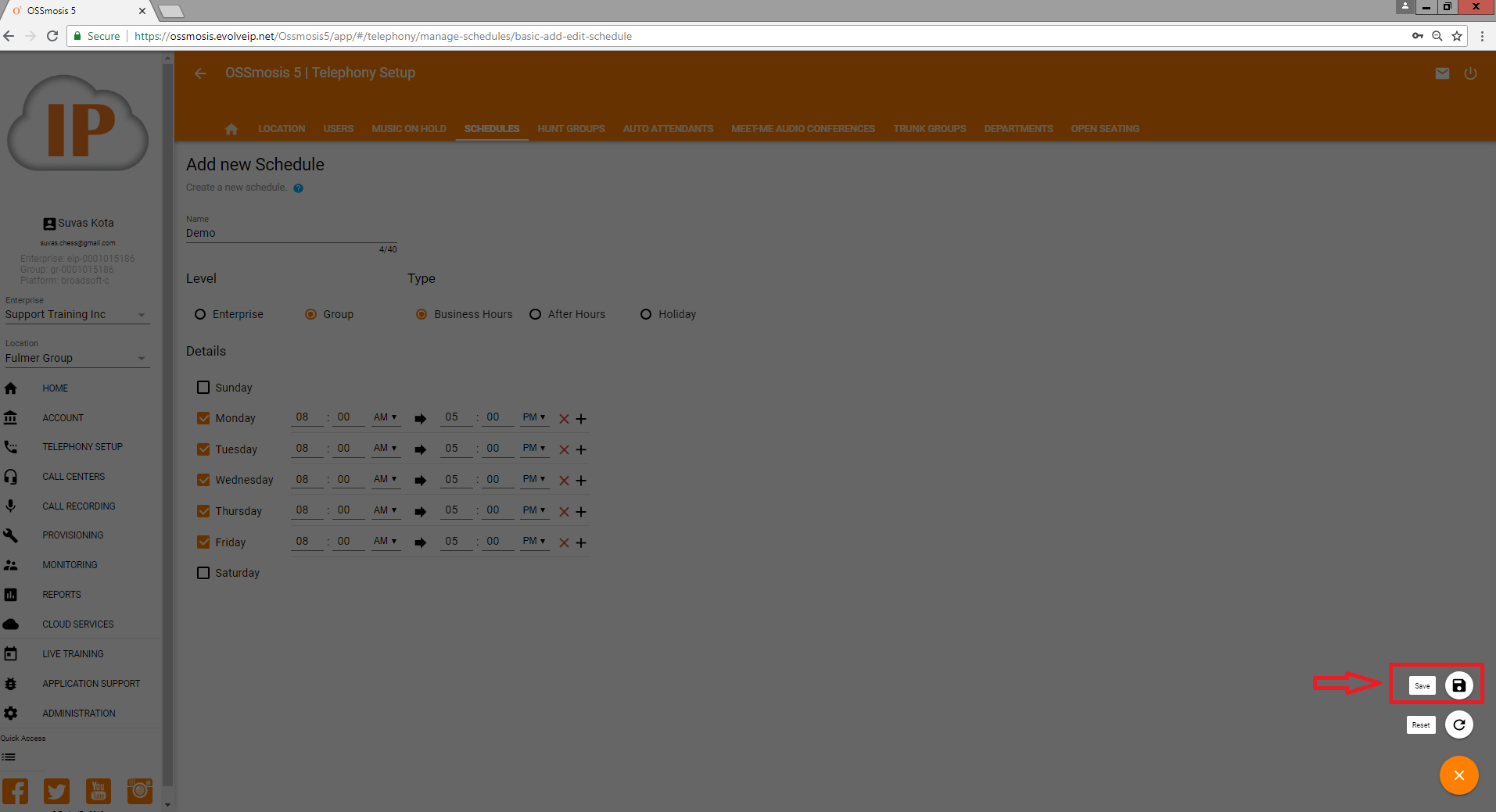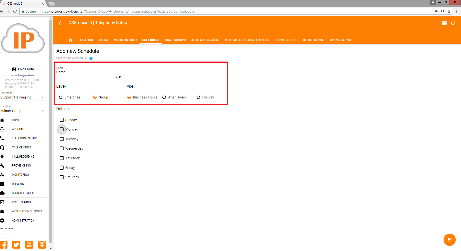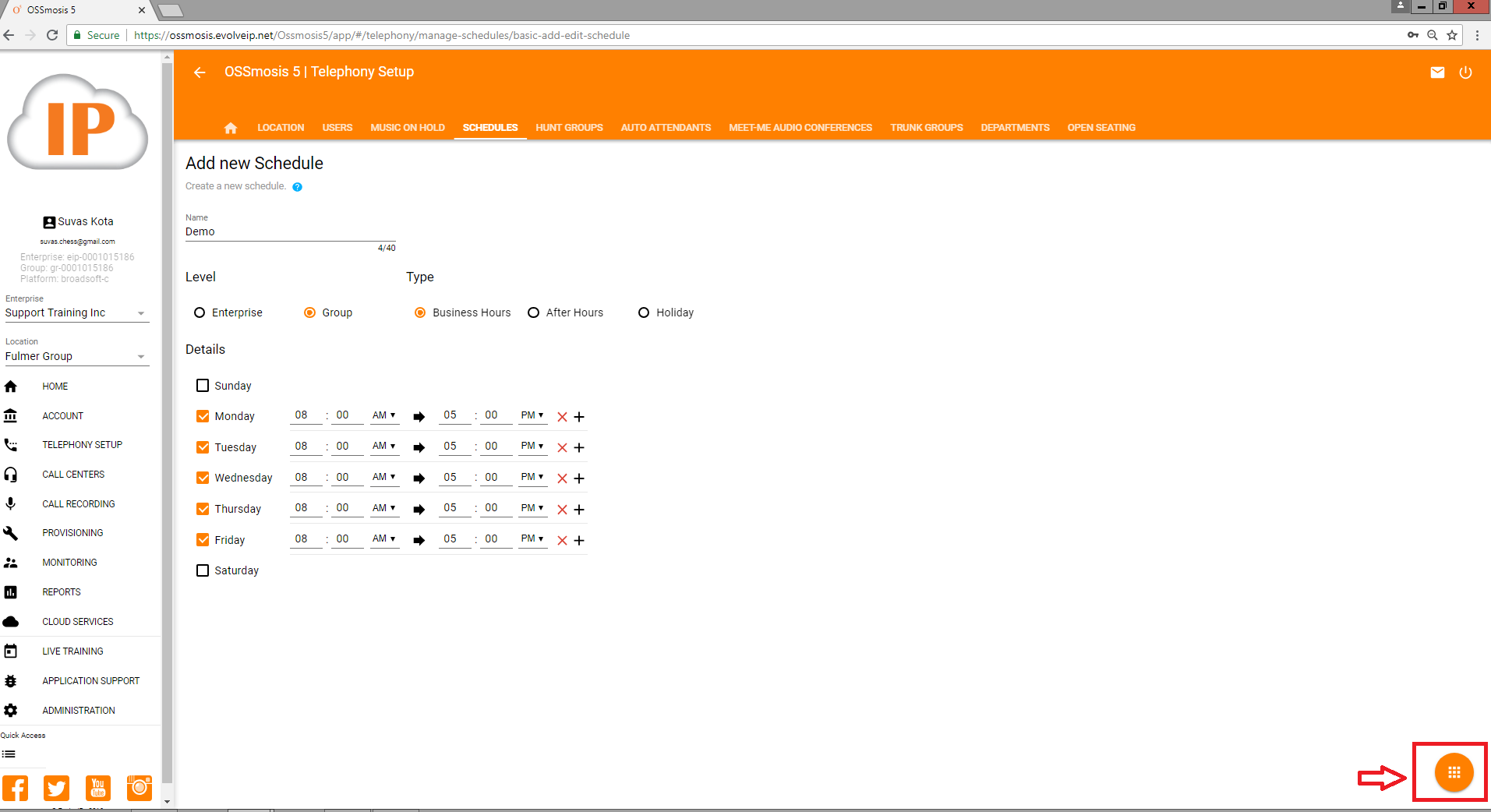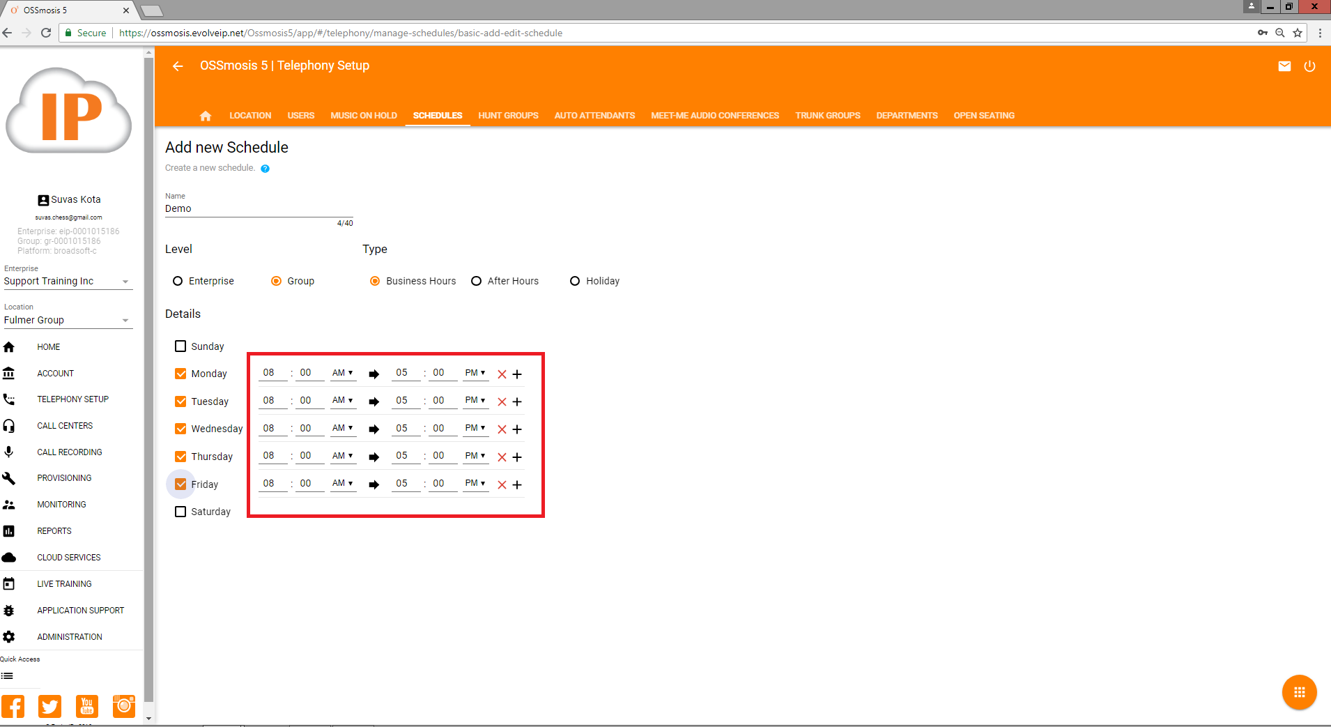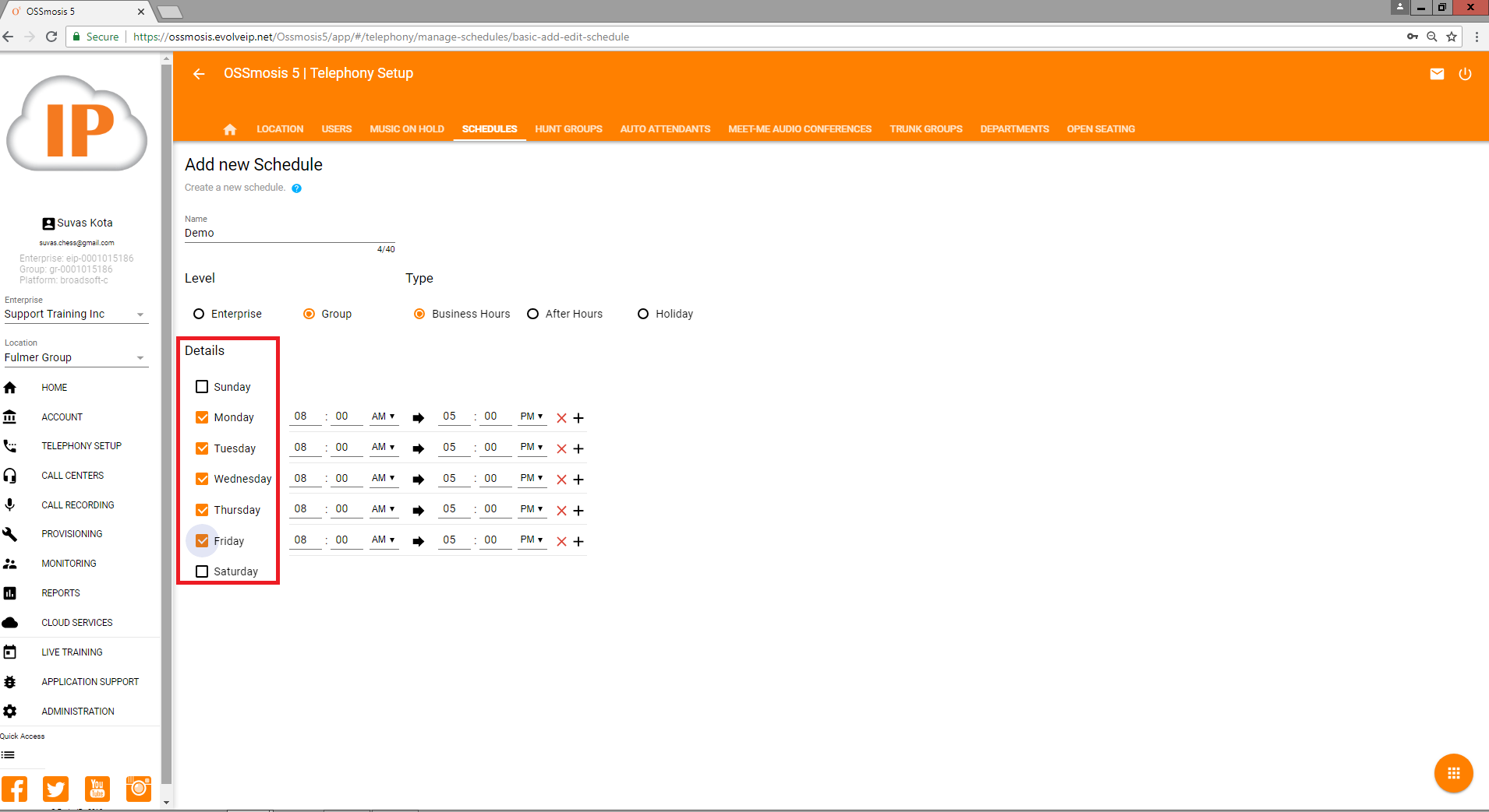 As you check off on each day for 'Business Hour ', input the starting time and ending time based on the customer's request