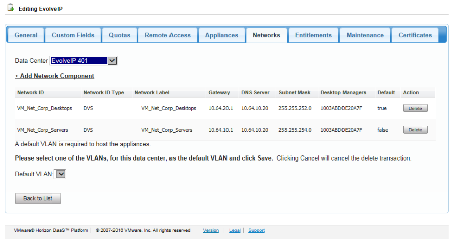 - Validate the changes by logging into the Service Center and navigating to the network settings of the tenant:
