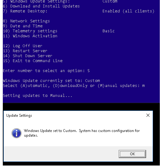 - If successful, you will see the following message and it will say Manual under option 5 instead of Custom.