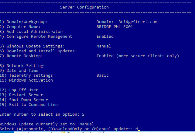 - Launch and administrative command prompt on the server and type Sconfig to enter the Server Configuration manager.