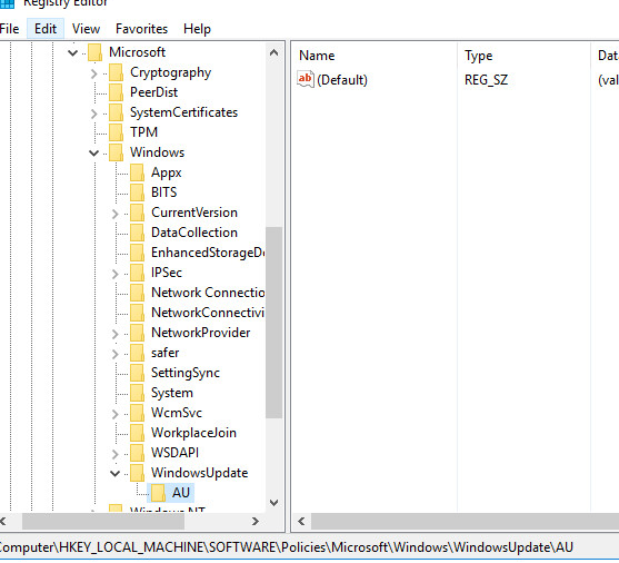 HKEY_LOCAL_MACHINE\SOFTWARE\Policies\Microsoft\Windows\WindowsUpdate\AU