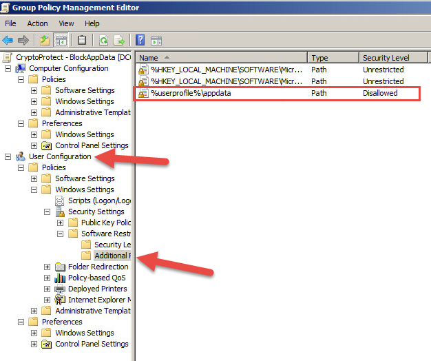 Right click to create a new path rule and enter in %userprofile%\AppData and set it to Disallowed.