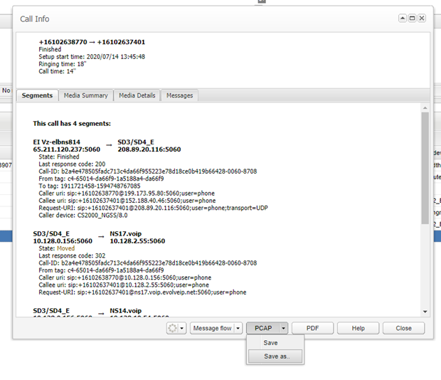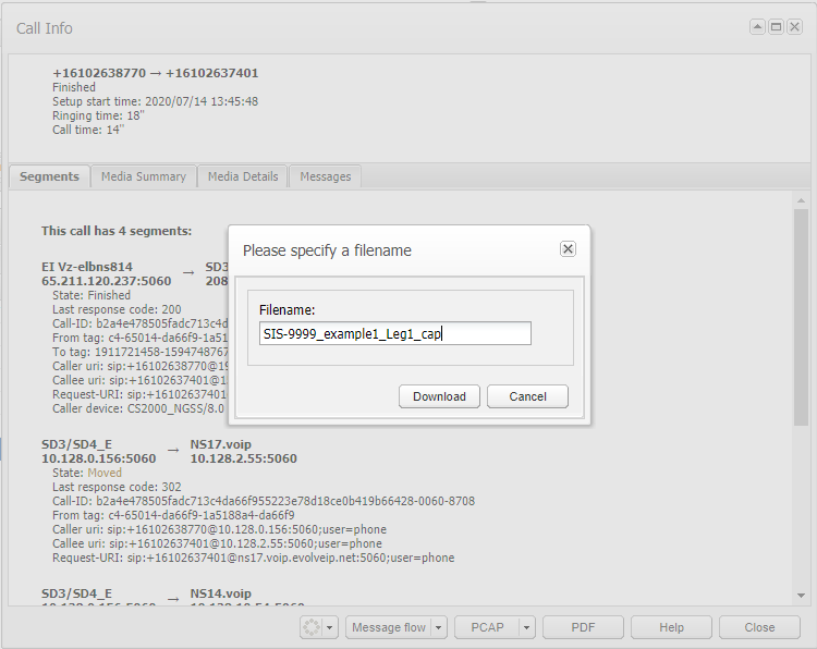 PLEASE NOTE: Both the PDF and the PCAP are required when documenting call examples.