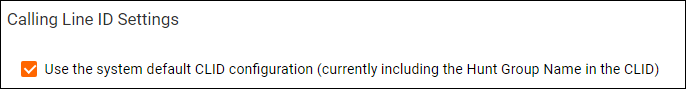 - Use the system default CLID configuration (currently including the Hunt Group Name in the CLID)
