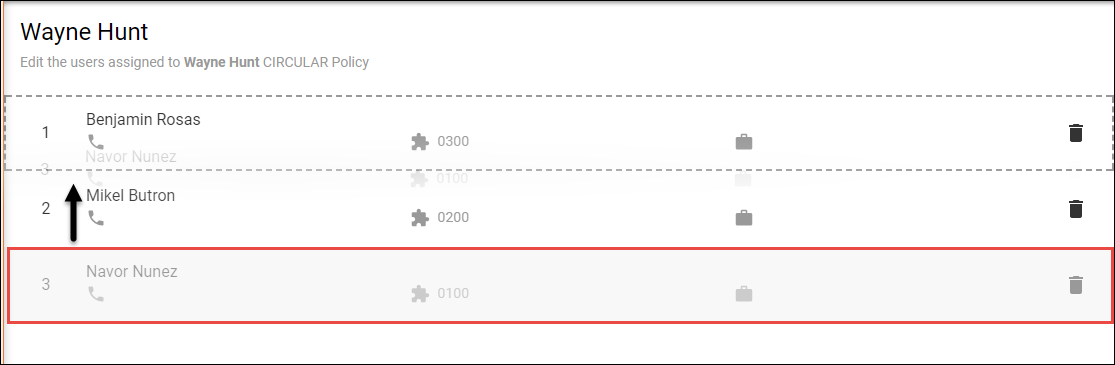 - Select a user and drag and drop them where they should fall in priority among the list of users within the hunt group
