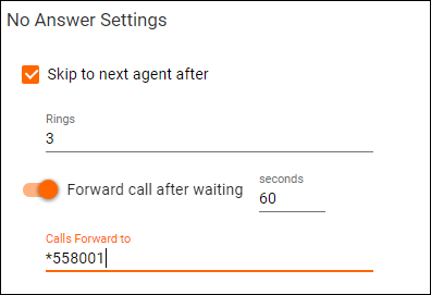 - Skip next agent after (x) rings – When applied, if the user does not pick up after the designated number of rings it will skip to the next user.