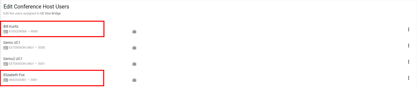From the Meet-Me Audio Conference landing page, select the Additional Options icon and Edit Users