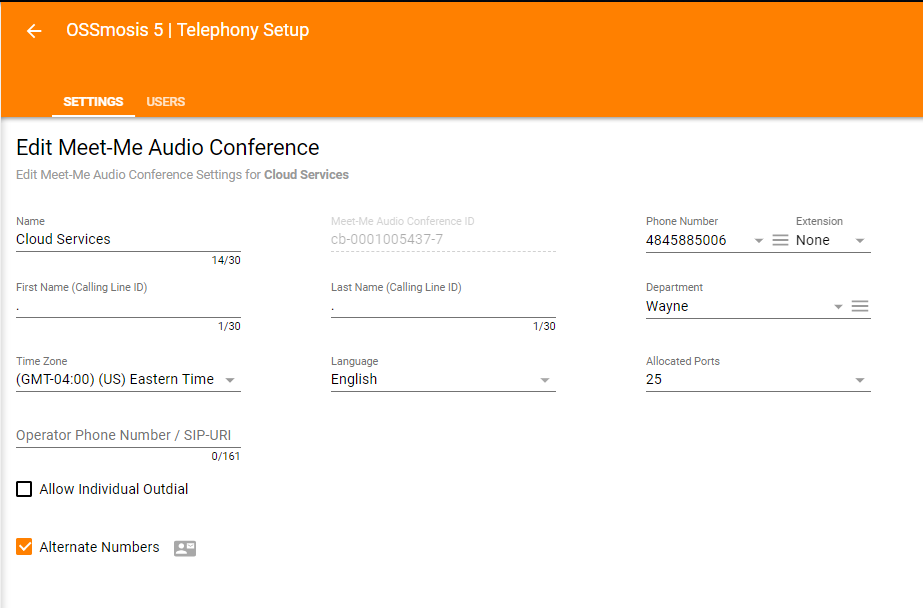 - First and Last Name Calling Line ID – The calling line ID is what will be presented to the users when receiving a call from the Meet-Me Audio Conference.
