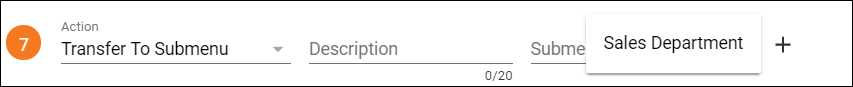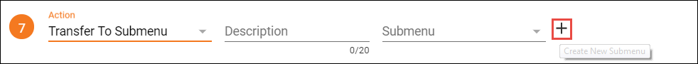 When Transfer to Submenu is selected as an Action Option within a Business, After Hours or Holiday menu, the Admin will fill in the submenu description and select the submenu from the Submenu Drop Down. If the submenu is not created, the Admin can select the Add icon to add a new submenu.