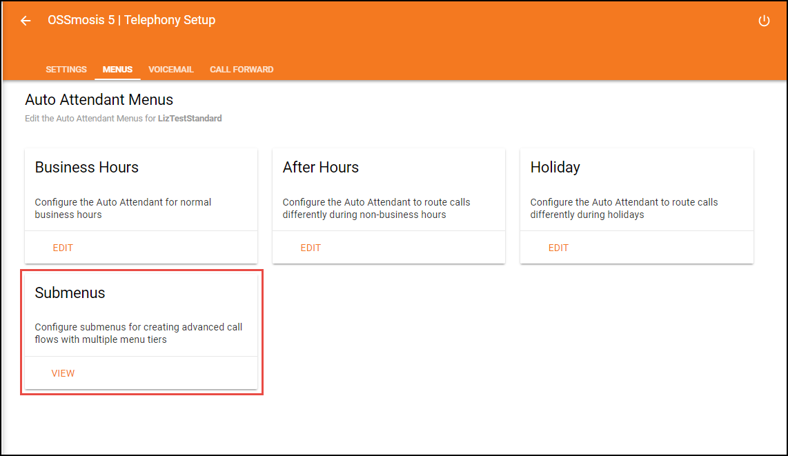 Admins can choose to create a Submenu within the Business, After Hours or Holiday menus or create a Submenu as a standalone to be added later.