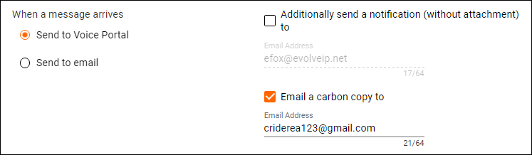 Send to Voice Portal: This option will keep the voicemail in the voice portal only.