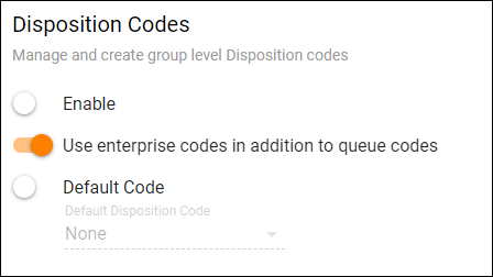 Disposition codes must first be enabled. Once enabled, there are two additional options that can be applied: