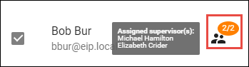 5. The icon next to the agent's name indicates whether the current supervisors selected are currently supervising the agent. The example below shows that one of the 2 supervisors selected is currently supervising the agent.