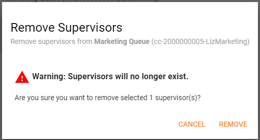 4. A warning pop-up will appear to validate the action of removing the supervisors. Select Remove.