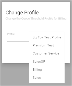 - Change Queue Profile: From the profile drop down select the new Queue Threshold profile to assign to the queue and select Save.