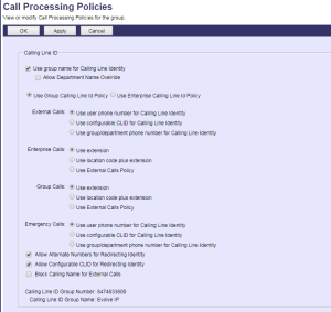 - If Use group/department phone number for Calling Line Identity, the group CLID is outpulsed