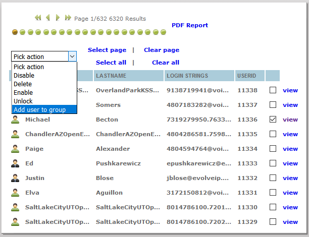 Step 7: Click on the checkbox next to the user and select "Add to Group" from the action drop down menu