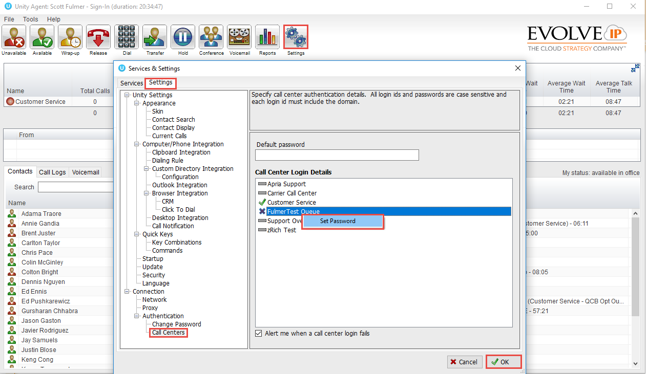 If the end user or the supervisor/admin does not know the current queue password, the following steps will allow one to reset it so the end user can input it within the Unity Agent client