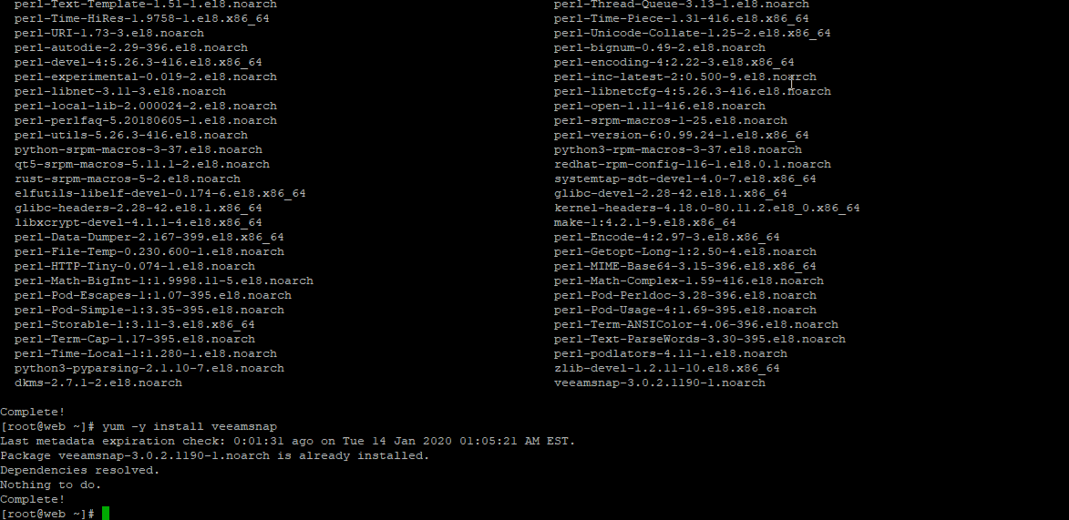 - For CentOS / RHEL If the dkms package was installed int he OS prior to the time when you install Veeam Agent for Linux, to install the product, use the following command: yum install kmod-veeamsnap veeam. With this command, the veeamsnap kernel module will be installed from the binary kmod-veeamsnap package. Otherwise, the veeamsnap module will be installed from the source RPM package using dkms.