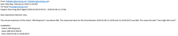 High 404 alerts are sent to us via email from the address palladion@evolveip.net.