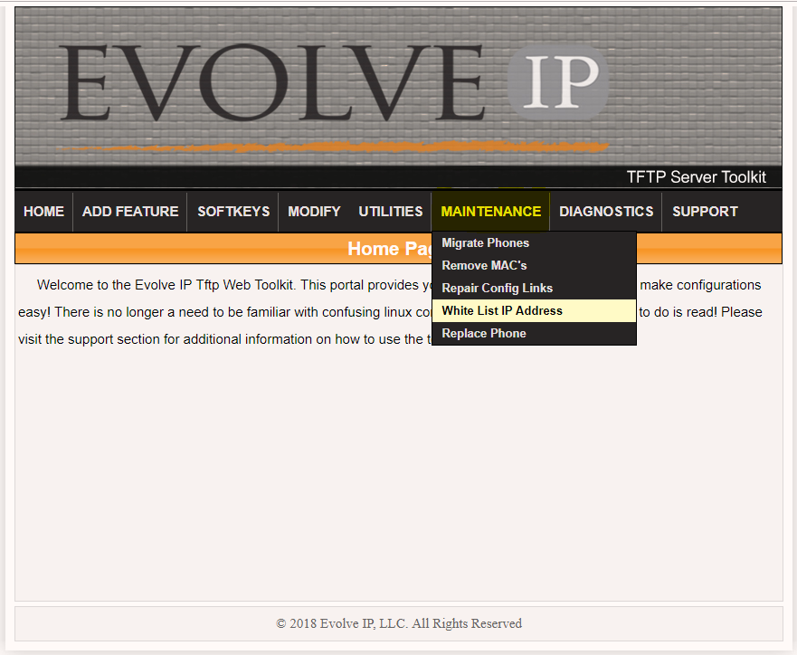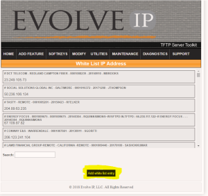 From the TFTP toolkit, highlight the maintenance menu, and select White List IP Address
