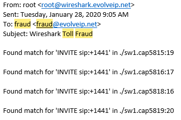 These alerts are sent to us via email from the address root@wireshark.evolveip.net