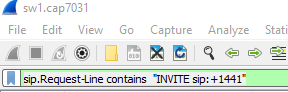In the email body we see the message INVITE sip:+1441 and the capture is in Sw1.cap5815:19, etc. No need to worry about the capture file portion as Tier 1 Support does not have access to Sw1 to be able to pull the capture files. So, in order to troubleshoot we turn to OCOM/Palladion and need to try to find the call examples that contain an INVITE message going to +1441.