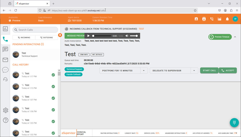 Image01 - eAgent - Listen to Audio Message Preview Callback while configured as Auto Answer calls: