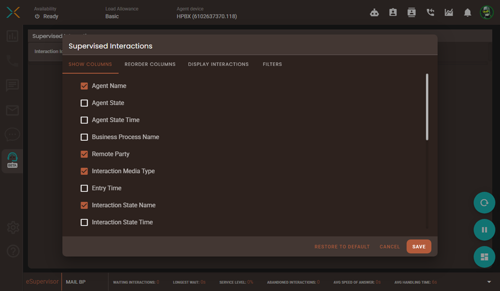 3. eSupervisor - Supervised Agents Monitor - Add "Restore to Default" button, which will reset the Agent Monitor settings to defaults. See Image03.