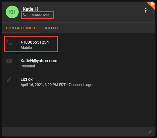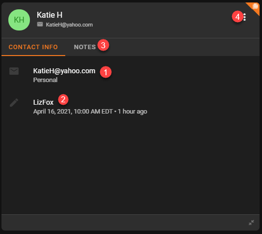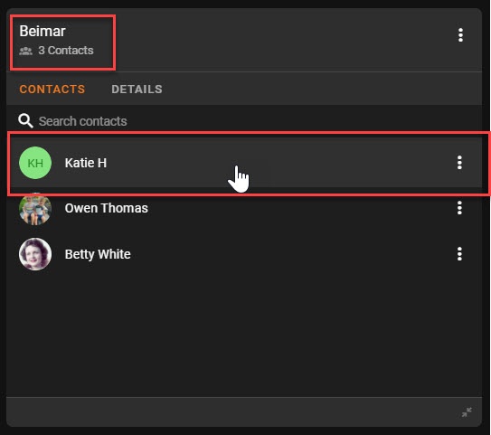 - Once a contact has been selected, the contact card will expand to show you detailed information about the contact.